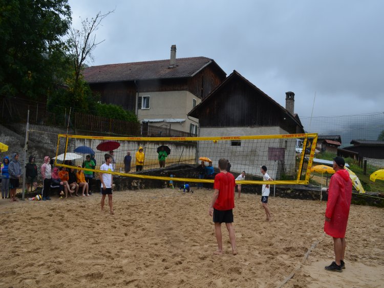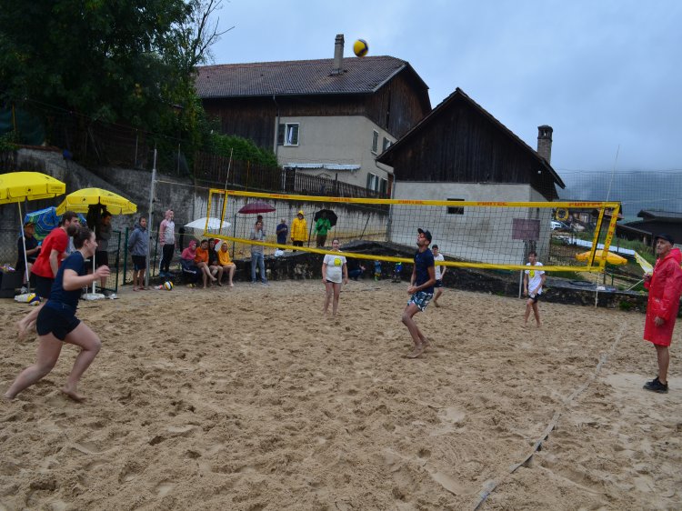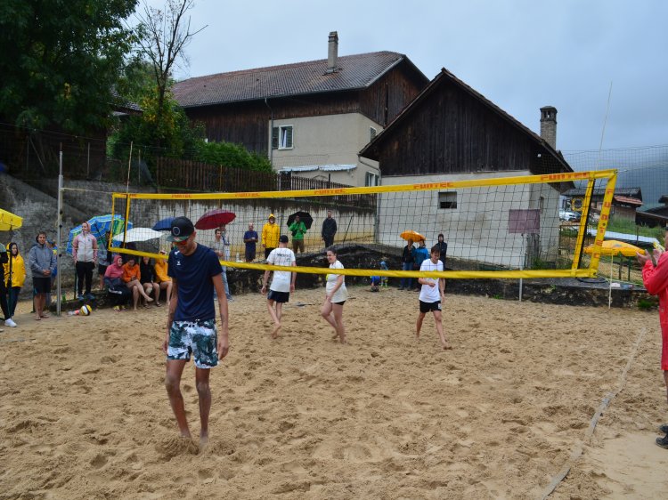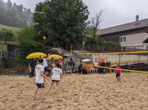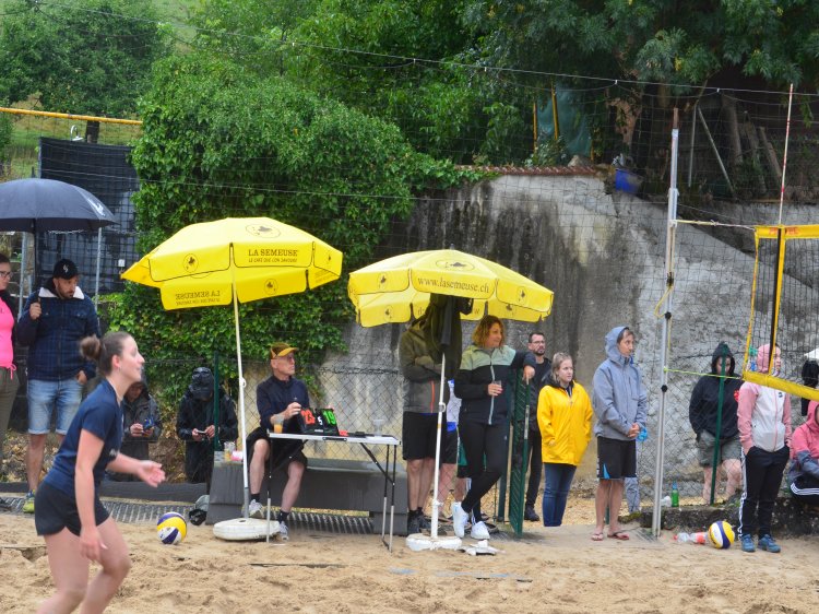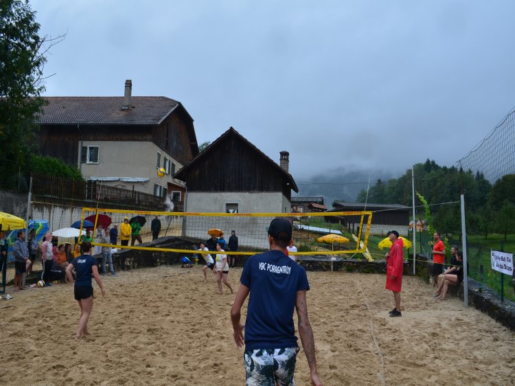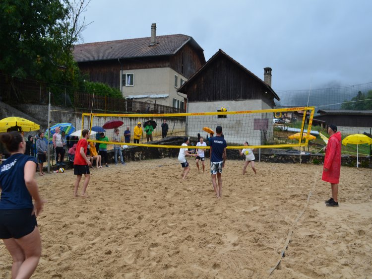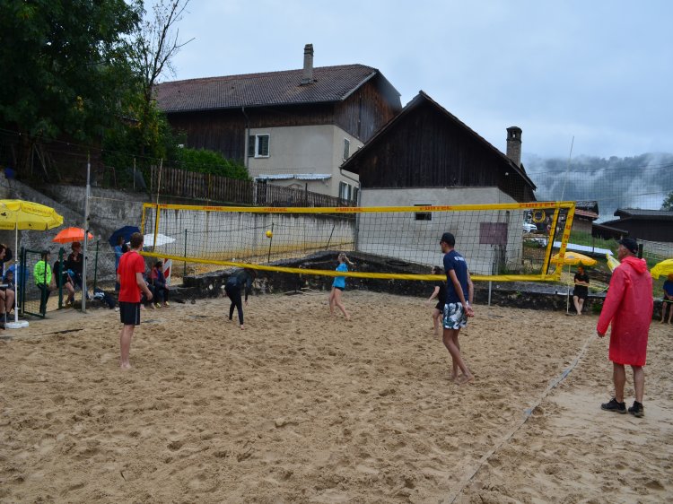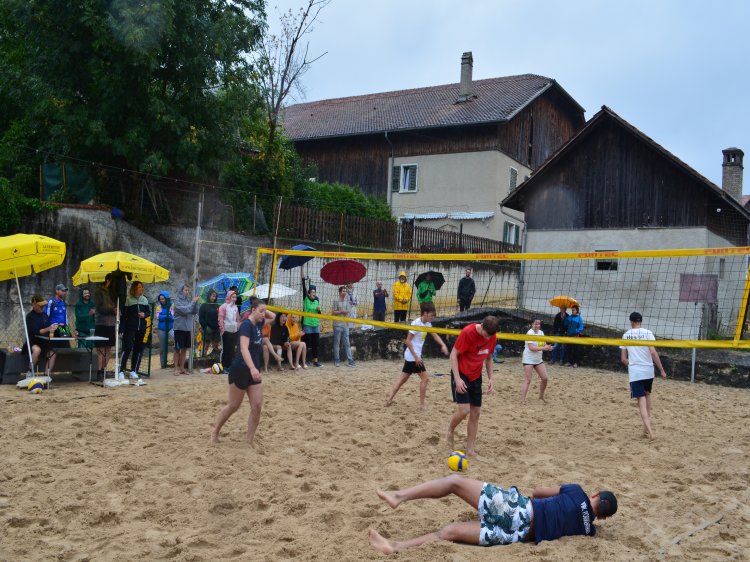 Malgré une météo quelque peu capricieuse et pluvieuse, notre traditionnel tournoi de beach-volley fut encore une fois un beau succès. Tant par la participation relevée de 10 équipes de sportifs que par un public présent toute la journée qui n’a pas boudé son plaisir d’encourager les athlètes au bord du terrain ou en passant un peu de temps à la buvette. La pluie n’aura gâché en rien la motivation des organisateurs. L’ambiance festive et « ensoleillée » palpable durant les 53 matchs de qualification de 7 minutes en fut une belle preuve. Pour 2023, le trio « La Fourberie » s’est imposé dans une finale pleine de rebondissements. Un match qui l’opposait aux « Cobra Kaï » .