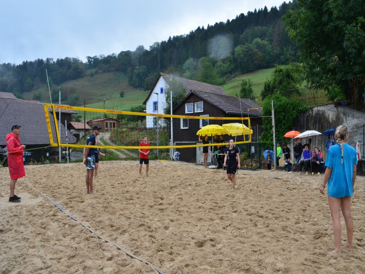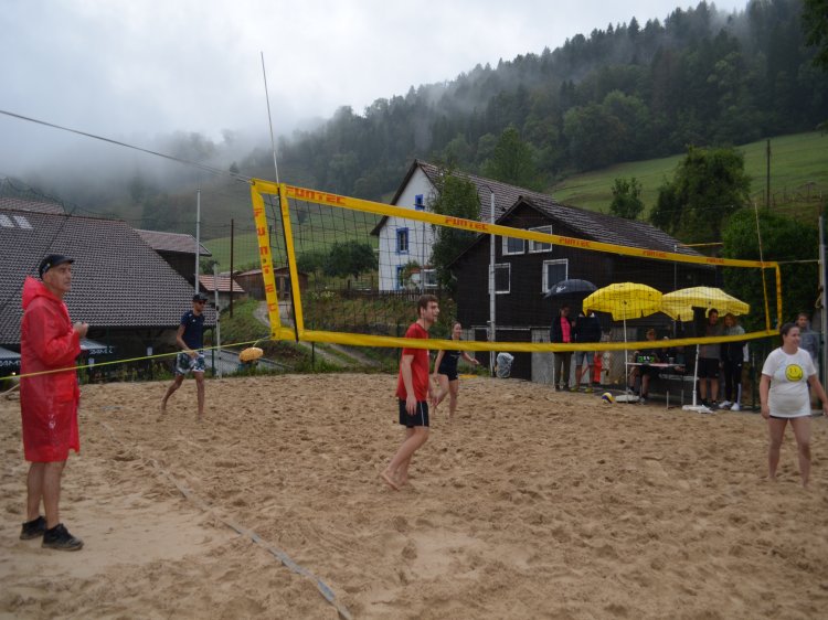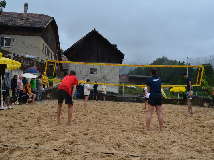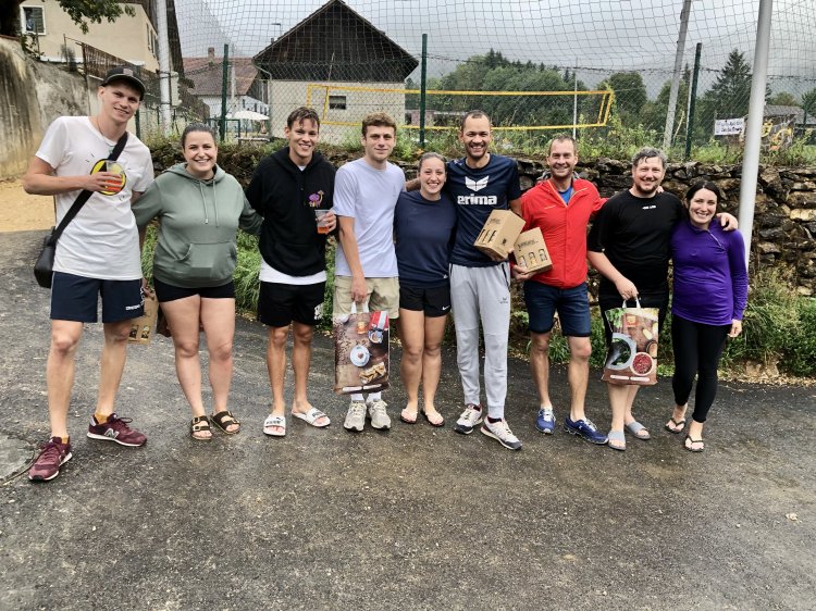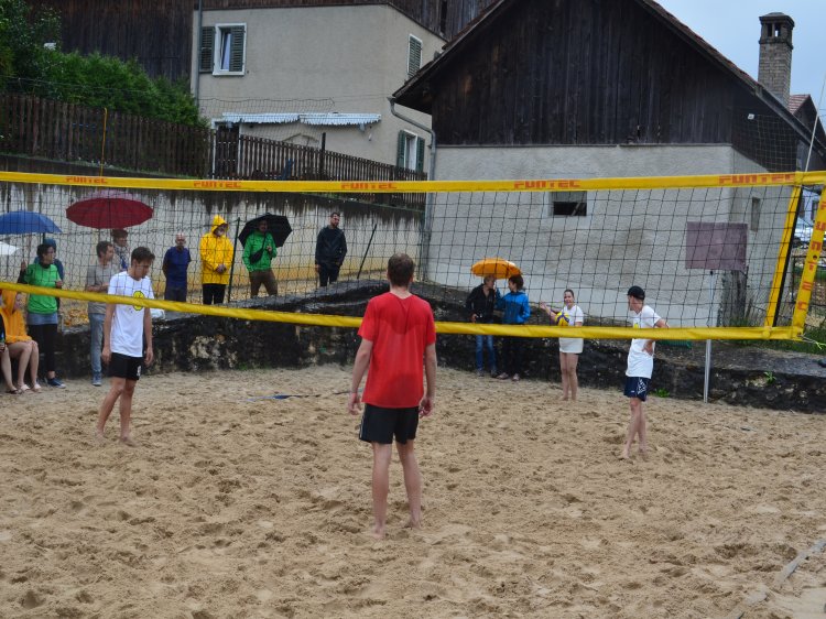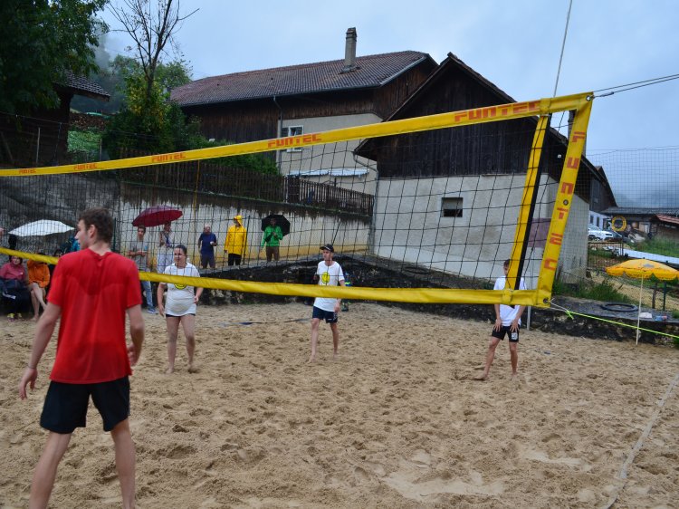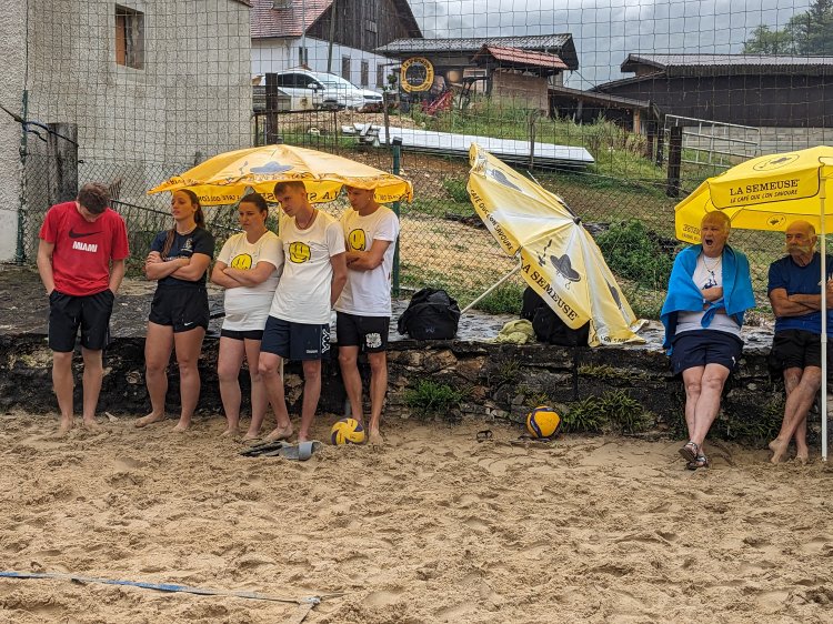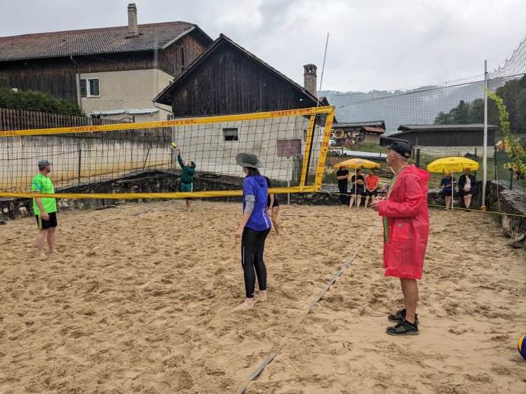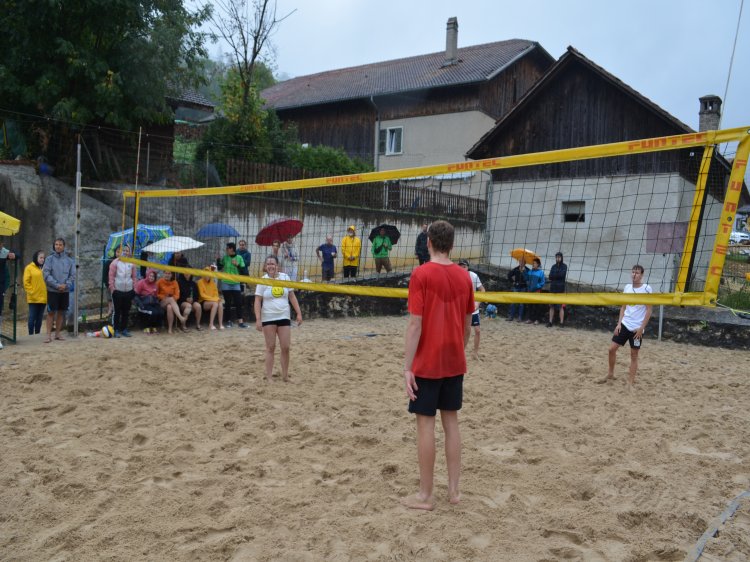 Malgré une météo quelque peu capricieuse et pluvieuse, notre traditionnel tournoi de beach-volley fut encore une fois un beau succès. Tant par la participation relevée de 10 équipes de sportifs que par un public présent toute la journée qui n’a pas boudé son plaisir d’encourager les athlètes au bord du terrain ou en passant un peu de temps à la buvette. La pluie n’aura gâché en rien la motivation des organisateurs. L’ambiance festive et « ensoleillée » palpable durant les 53 matchs de qualification de 7 minutes en fut une belle preuve. Pour 2023, le trio « La Fourberie » s’est imposé dans une finale pleine de rebondissements. Un match qui l’opposait aux « Cobra Kaï » .
