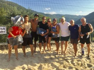 Le 24 août dernier, les passionnés de beach-volley se donnaient rendez-vous pour la 6ème édition de ce tournoi quelque peu décalé par rapport à d’autres activités sportives de la région. Il n’existe en effet pas beaucoup de places de sable permettant la pratique de ce sport en toute sécurité. L’espace de Ravines mis à disposition par Dorothée & Erwin, propriétaires d’une maison de vacances dans le hameau, se prête parfaitement à l’organisation d’une pareille manifestation. Toutes les conditions sont réunies pour pratiquer cette activité. Comme d’habitude, dix équipes de 3 joueurs se sont affrontés amicalement durant plus de huit heures afin de départager les plus aguerris et les plus résistants à ce sport exigeant. On retrouve au classement final (voir photo de gauche à droite) : 2ème Fête des Fleurs 3.0, 1er Biches Lactiques et 3ème Les Tongs. Cette journée ensoleillée a été bien évidemment ponctuée de petites pauses bienvenues pour se désaltérer et d’un repas afin de sustenter les joueurs et le public présent pour l’occasion. Le tout baigné de mélodies modernes et de musiques latines qui laissaient penser, l’espace d’un jour, que la plage de Copacabana n’était finalement pas si loin. Un nouveau rendez-vous est d’ores et déjà fixé au 22 août 2020 pour la 7ème édition du Brigibeach Contest Ravines. Notez-le déjà dans vos agendas…